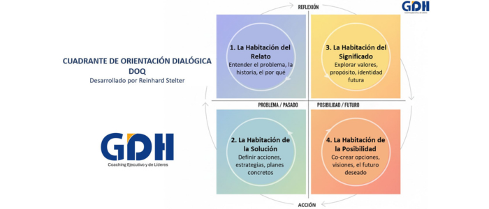 Contar con un mapa evita que una reunión de Coaching de vueltas sobre el mismo problema sin generar avances, porque el Coach se queda “atrapado” en el relato del Talento, cayendo en la Trampa de la Circularidad. Aquí es donde entra en juego el Cuadrante de Orientación Dialógica DOQ no como una teoría, sino como una herramienta de navegación para el proceso de Coaching.